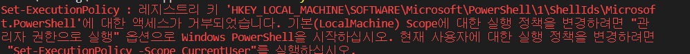Set-ExecutionPolicy : 레지스트리 키에 대한 액세스가 거부되었습니다.